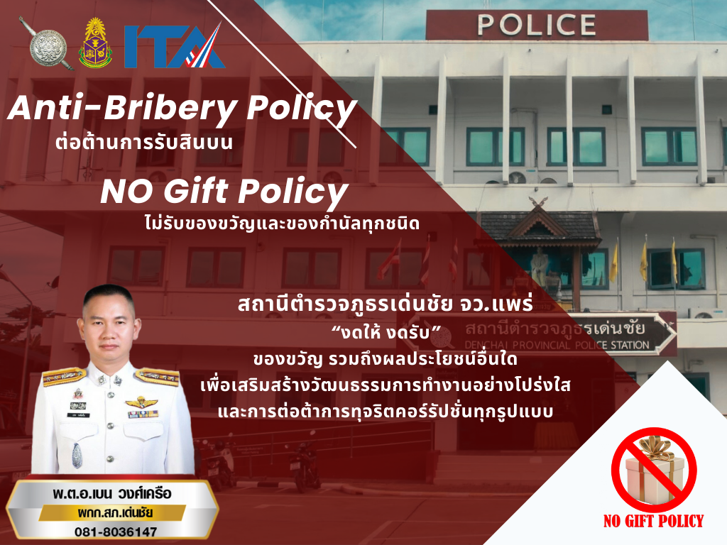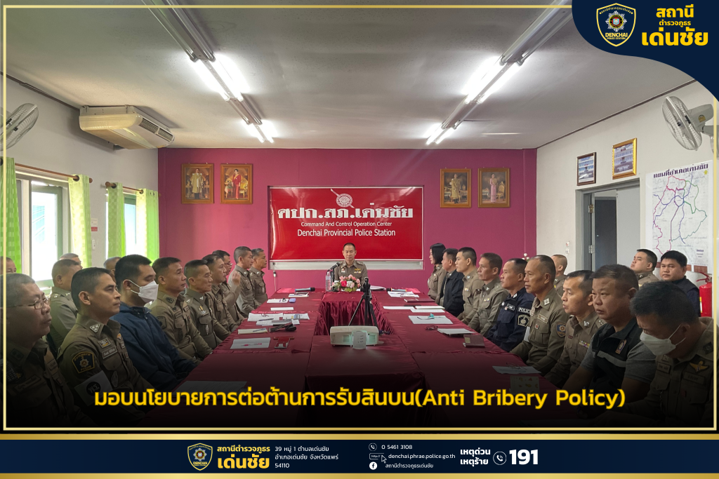 วันที่ 29 พ.ย.67 เวลา 09.00 น. พ.ต.อ.เบน วงศ์เครือ ผกก.สภ.เด่นชัย ได้จัดการประชุมข้าราชการตํารวจในสังกัด เพื่อชี้แจง และประกาศ เจตจํานง ในการนํานโยบายการต่อต้านการรับสินบน(Anti- Bribery Policy) ไปปฏิบัติ เพื่อให้ทุกคนทราบและปฏิบัติ โดยชี้แจงให้เข้าถึง การไม่รับของขวัญ ของกํานัลตามประกาศของสถานี เป็นสิ่งที่ต้องปฏิบัติตามประกาศโดยทุกคนทราบเเละ ตั้งมั่นปฏิบัติให้เกิดเป็นรูปธรรมและเป็นที่ประจักษ์ของสาธารณะชนโดยให้จัดทําประกาศติดไว้ที่จุดบริการประชาชนเพื่อให้ทราบโดยทั่วกัน