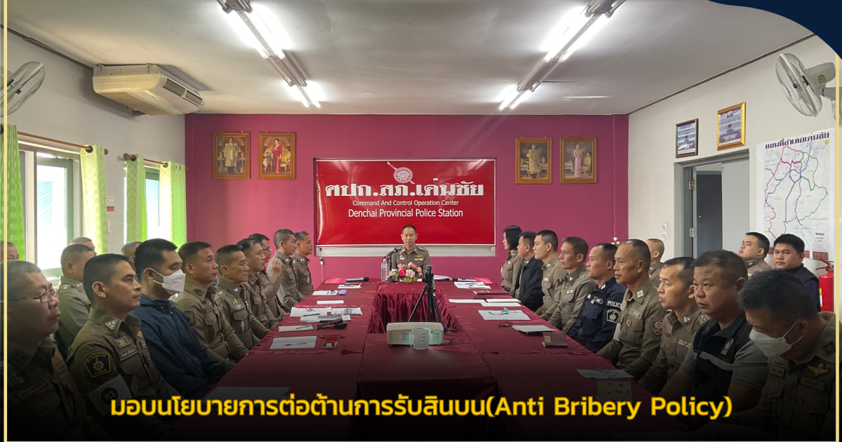 วันที่ 29 พ.ย.67 เวลา 09.00 น. พ.ต.อ.เบน วงศ์เครือ ผกก.สภ.เด่นชัย ได้จัดการประชุมข้าราชการตํารวจในสังกัด เพื่อชี้แจง และประกาศ เจตจํานง ในการนํานโยบายการต่อต้านการรับสินบน(Anti- Bribery Policy) ไปปฏิบัติ เพื่อให้ทุกคนทราบและปฏิบัติ โดยชี้แจงให้เข้าถึง การไม่รับของขวัญ ของกํานัลตามประกาศของสถานี เป็นสิ่งที่ต้องปฏิบัติตามประกาศโดยทุกคนทราบเเละ ตั้งมั่นปฏิบัติให้เกิดเป็นรูปธรรมและเป็นที่ประจักษ์ของสาธารณะชนโดยให้จัดทําประกาศติดไว้ที่จุดบริการประชาชนเพื่อให้ทราบโดยทั่วกัน