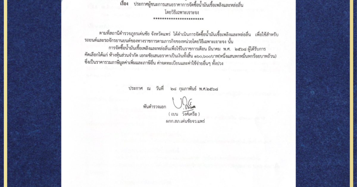 ประกาศจัดซื้อจัดจ้างประจำเดือน มีนาคม 2568 28 มีนาคม 2568 by admin / ข่าวจัดซื้อจัดจ้าง ดาวน์โหลดไฟล์ PDF Facebook iconFacebookTwitter iconTwitterLINE iconLine