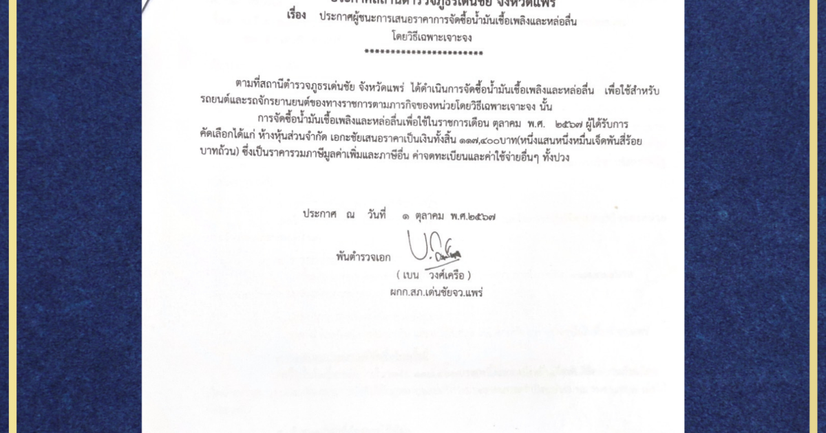 ประกาศจัดซื้อจัดจ้างประจำเดือน ตุลาคม 2567 1 พฤศจิกายน 2567 by admin / ข่าวจัดซื้อจัดจ้าง ดาวน์โหลดไฟล์ PDF คลิกที่นี้ Facebook iconFacebookTwitter iconTwitterLINE iconLine