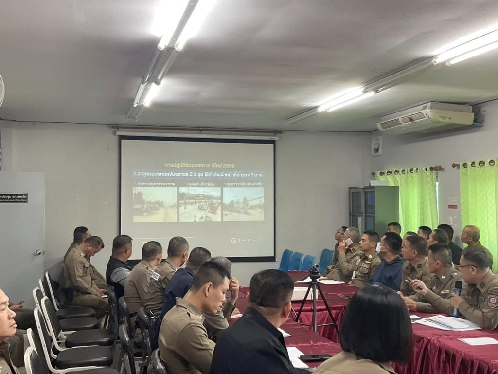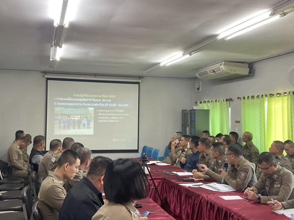 วันนี้(24 ธ.ค..67)เวลา 10.00 น. พ.ต.อ.เบน วงศ์เครือ ผกก. สภ.เด่นชัย พ.ต.ท.ชัยชาญ ตาตระกูล รอง ผกก.ป.สภ.เด่นชัย พ.ต.ท.กฤตชัย สายวงค์ รอง ผกก.(สอบสวน)สภ.เด่นชัย พ.ต.ท.กนกศักดิ์ เรียนแพง รอง ผกก.สส.สภ.เด่นชัย พ.ต.ท.ทวีศักดิ์ หงษ์สามสิบหก สวป.สภ.เด่นชัย พ.ต.ต.ธวัชชัย ทิพย์หิรัญกุล สวป.(ชส)สภ.เด่นชัย พ.ต.ต.ณรงค์ฤทธิ์ กวาวสิบ สว.สส.สภ.เด่นชัย พ.ต.ท.หญิง น้ำทิพย์ โชติเดโชชัย สว.อก.สภ.เด่นชัย พร้อมด้วยข้าราชการตำรวจ สภ.เด่นชัย ประชุมเตรียมความพร้อมป้องกันและลดอุบัติเหตุทางถนนช่วงเทศกาลปีใหม่ พ.ศ.2568 ณ ห้องประชุม ศปก.สภ.เด่นชัย