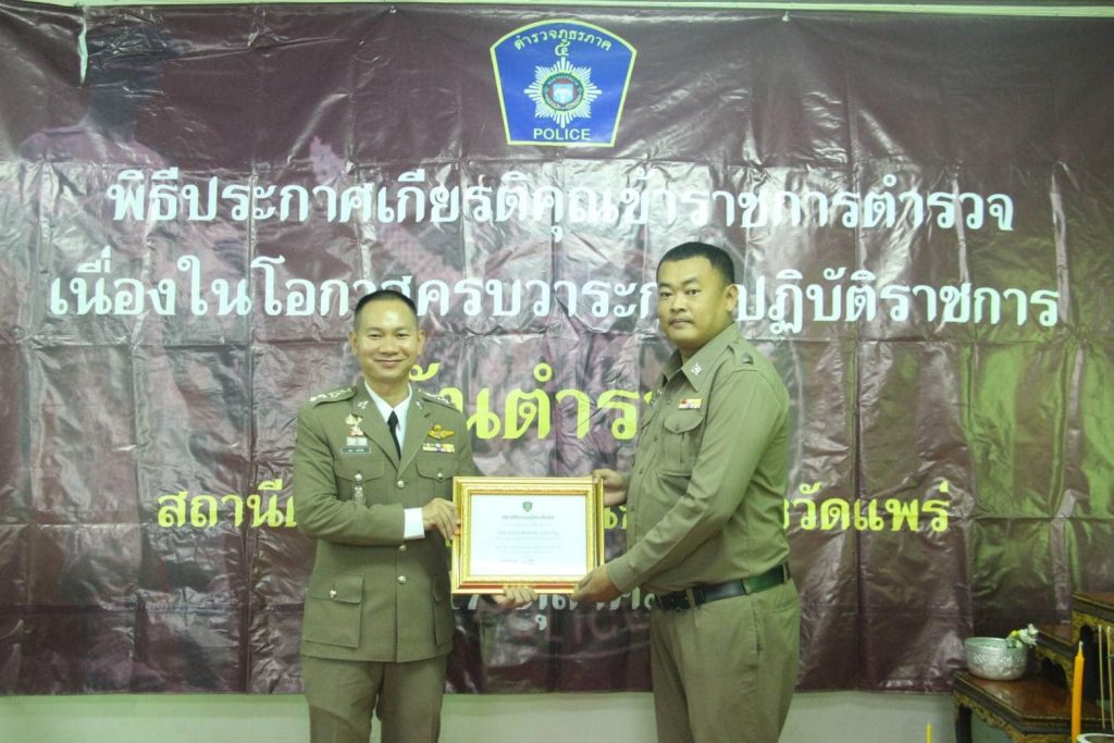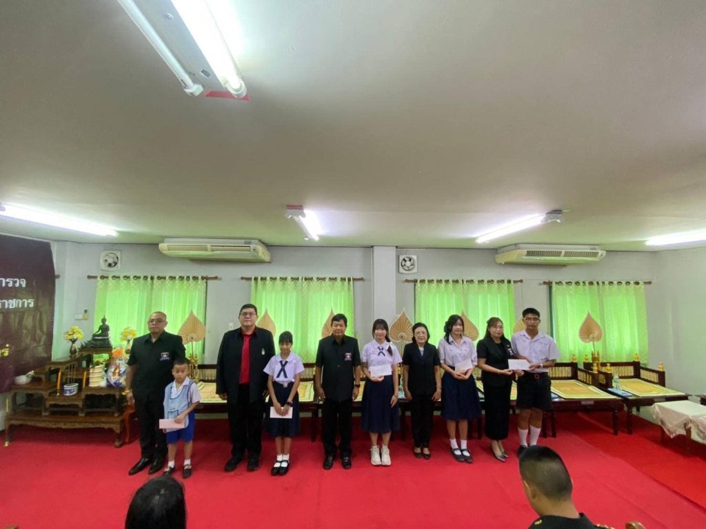 ต่อมา เวลา 10.00 น. พ.ต.อ.เบน วงศ์เครือ ผกก.สภ.เด่นชัย ,นายสมศักดิ์ เจริญคำ ประธาน กต.ตร.,คณะ กต.ตร.และที่ปรึกษา พร้อมข้าราชการตำรวจในสังกัด สภ.เด่นชัย ร่วมทำบุญถวายภัตตาหารเพลแด่พระสงฆ์ และ มอบทุนการศึกษา บุตร-ธิดา ข้าราชการตำรวจ มอบประกาศเกียรติคุณข้าราชการตำรวจดีเด่น มอบประกาศเกียรติคุณ พงส. ดีเด่น ณ สถานีตำรวจภูธรเด่นชัย