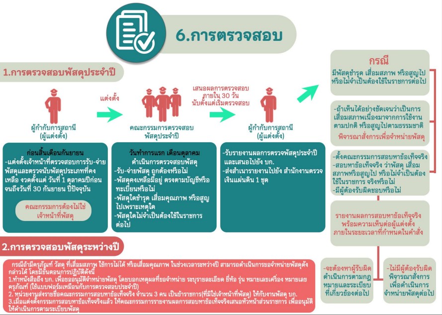 - กำหนดแนวทางควบคุม กำกับ ดูแลรักษา ตรวจนับ ตรวจสอบสภาพการใช้งานของบริจาค โดยเฉพาะทรัพย์ประเภทที่มีความเสี่ยงต่อการนำไปใช้โดยมิชอบ